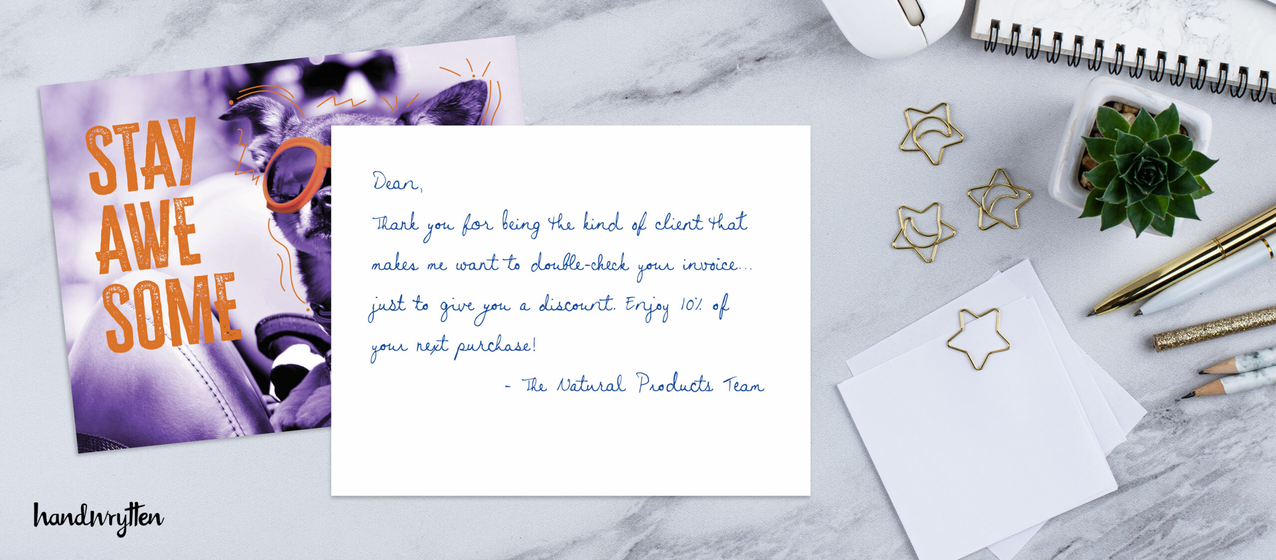 And with Handwrytten, you can send cards that feel personal without doing all the writing yourself. Humor meets hustle? That’s the best kind of thank-you.