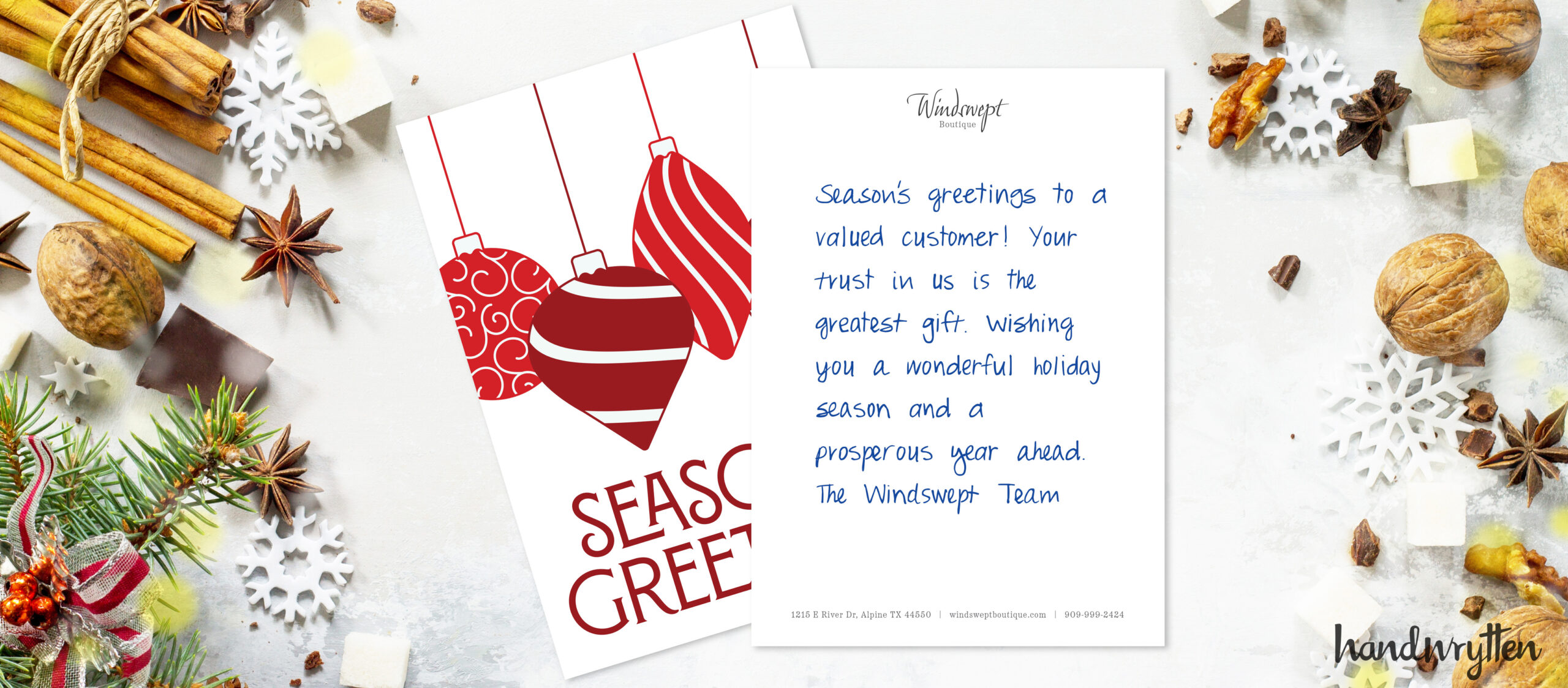 “Thank you for being a part of our journey this year. Your trust and loyalty mean the world to us. Warmest wishes for a joyful holiday season!”