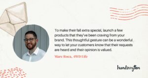 If you’re a well-established brand with a set of regular customers, it’s likely that you’ve received regular requests from them. To make their fall extra special, launch a few products that they’ve been craving from your brand. This thoughtful gesture can be a wonderful way to let your customers know that their requests are heard and their opinion is valued.