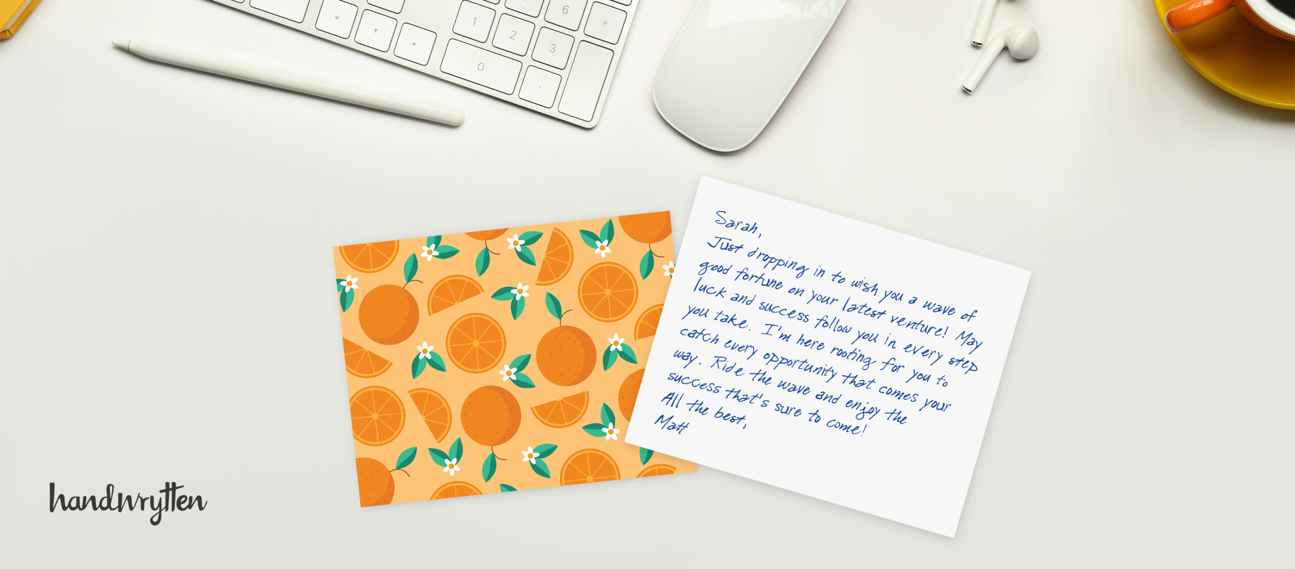 With Handwrytten, you can choose from various designs, write your own message, or even request a custom design. Your handwritten note will then be transcribed and sent out to your recipient, bringing a personal touch to their well wishes. So the next time you want to wish someone “best of luck”, consider using Handwrytten for a more personal and heartfelt message.