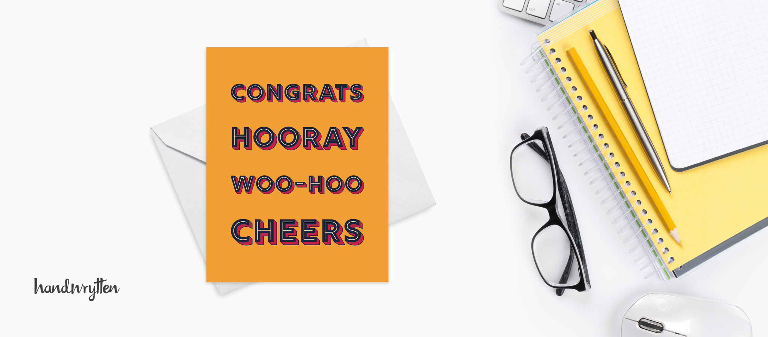 With Handwrytten, your congratulations stand out, weaving warmth, personality, and unforgettable charm into each word. It’s more than a note; it’s a memorable gesture that strengthens bonds and brings joy. Turn your gesture of congratulations into a cherished memory with Handwrytten—where every note is as unique and special as the person receiving it.