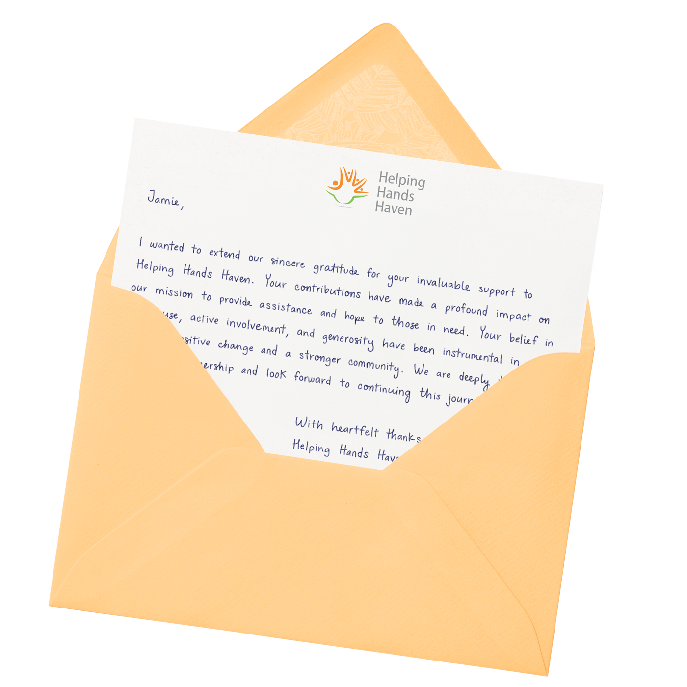 Craft a personalized message that gives donors a sense of why your organization is so valuable. From custom handwriting styles to the perfect stationery design, create the ideal nonprofit direct mail message to spread awareness of your organization.