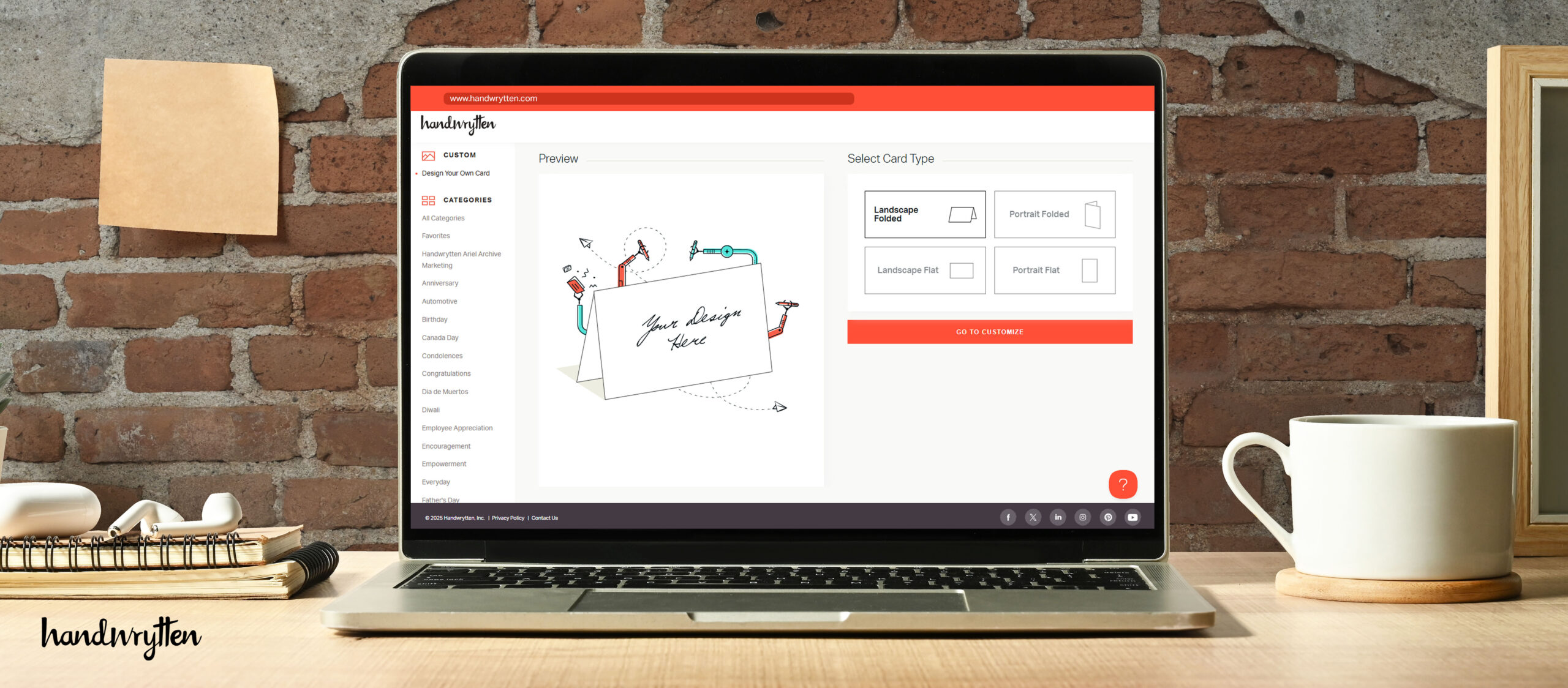 Not exactly. You can include written elements like headers, footers, logos, or even QR codes as part of your card design—but the main message will be handwritten by our robot friends. If you’re looking to include a fully printed message (not handwritten), reach out to our design team for options and pricing.