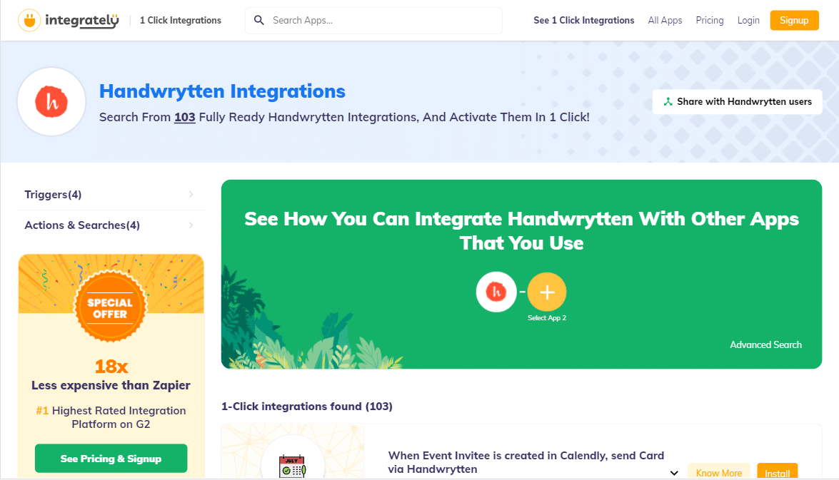 Search from 250,000+ fully ready Integrations, And Activate Them In 1 Click! Send handwritten cards as part of your automated flow, easily!