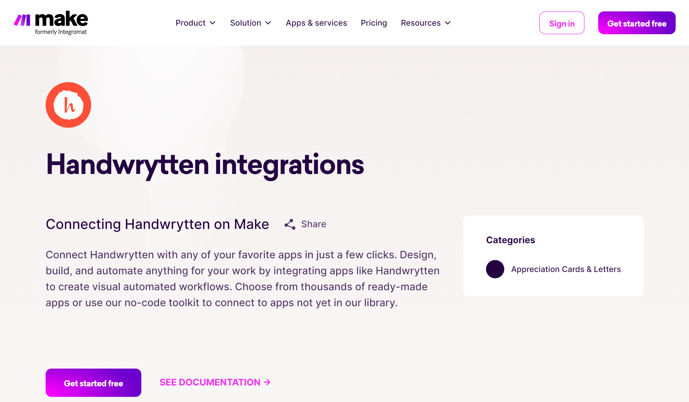 I love that I can connect Handwrytten to Make. It allows me to create handwriting campaigns based on triggered rulesets that would be otherwise difficult to do. The cards truly creating a unique customer experience, thanks to Handwritten and Make.