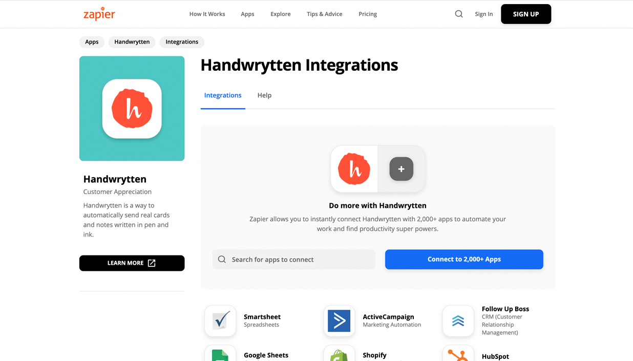Send handwritten thank you cards to customers who hit a certain value, after their second purchase or to those that haven’t ordered in a while. Send notes to Hubspot or Salesforce contacts who have recently become prospects. Thanks to our integration, it’s really that simple. Zapier works in the background to continually send the cards based on your criteria.