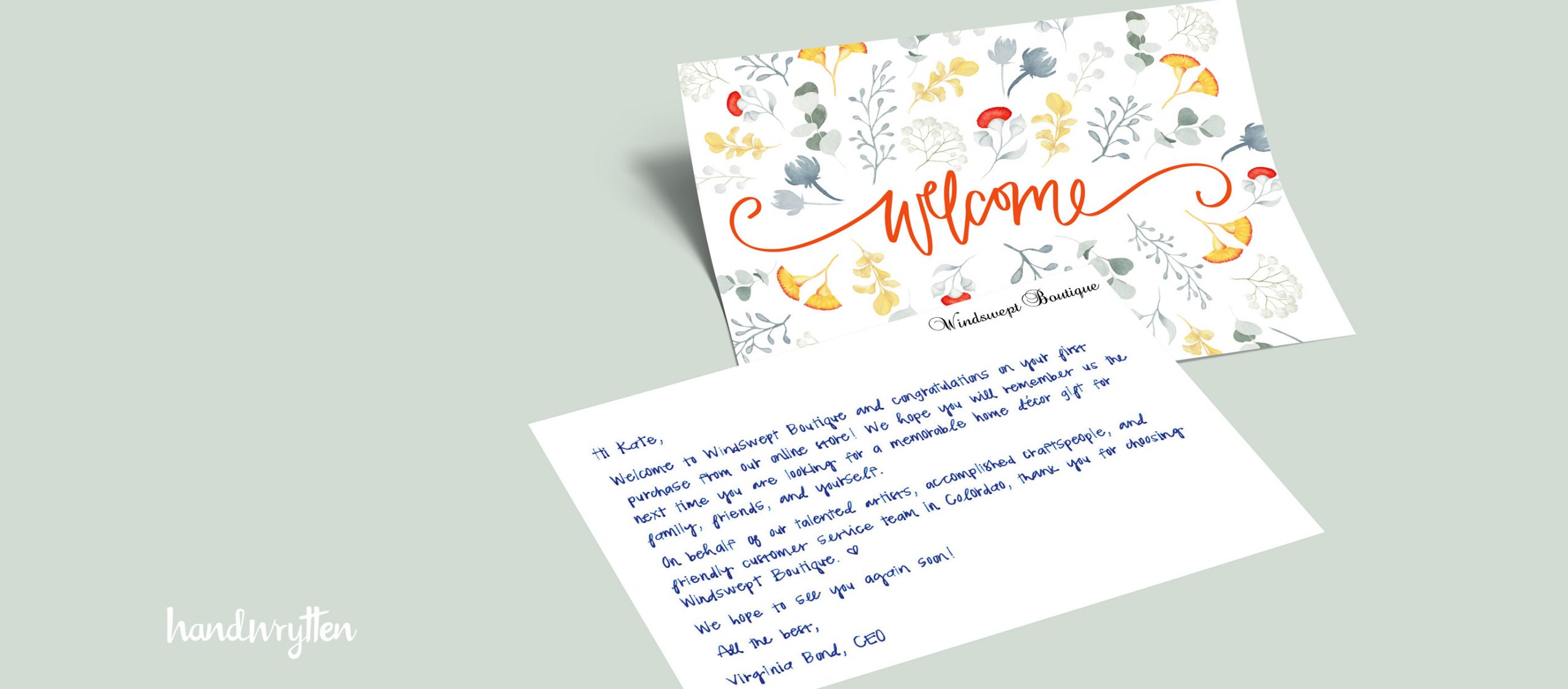 If writing is not your favorite task, head over to Handwrytten to see our robot-crafted letters that look almost like actual handwriting, giving your welcome letter a personal touch.