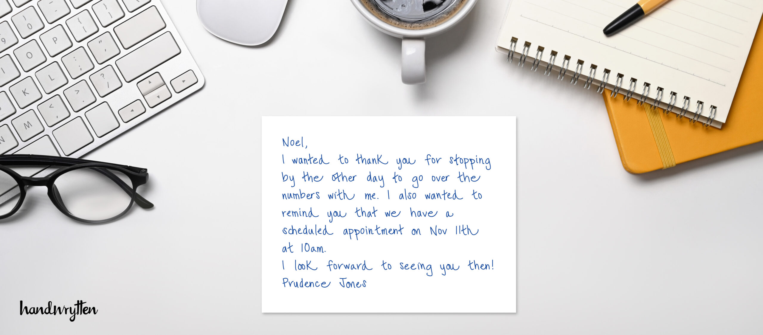 With Handwrytten’s Custom Data Fields, you can go beyond simple name personalization. Add details like a sales rep’s name, product preferences, appointment dates, or any other information that makes your communication more meaningful. When sending at scale, these small touches create a big impact — helping you build stronger relationships while maintaining the handwritten authenticity that Handwrytten is known for.