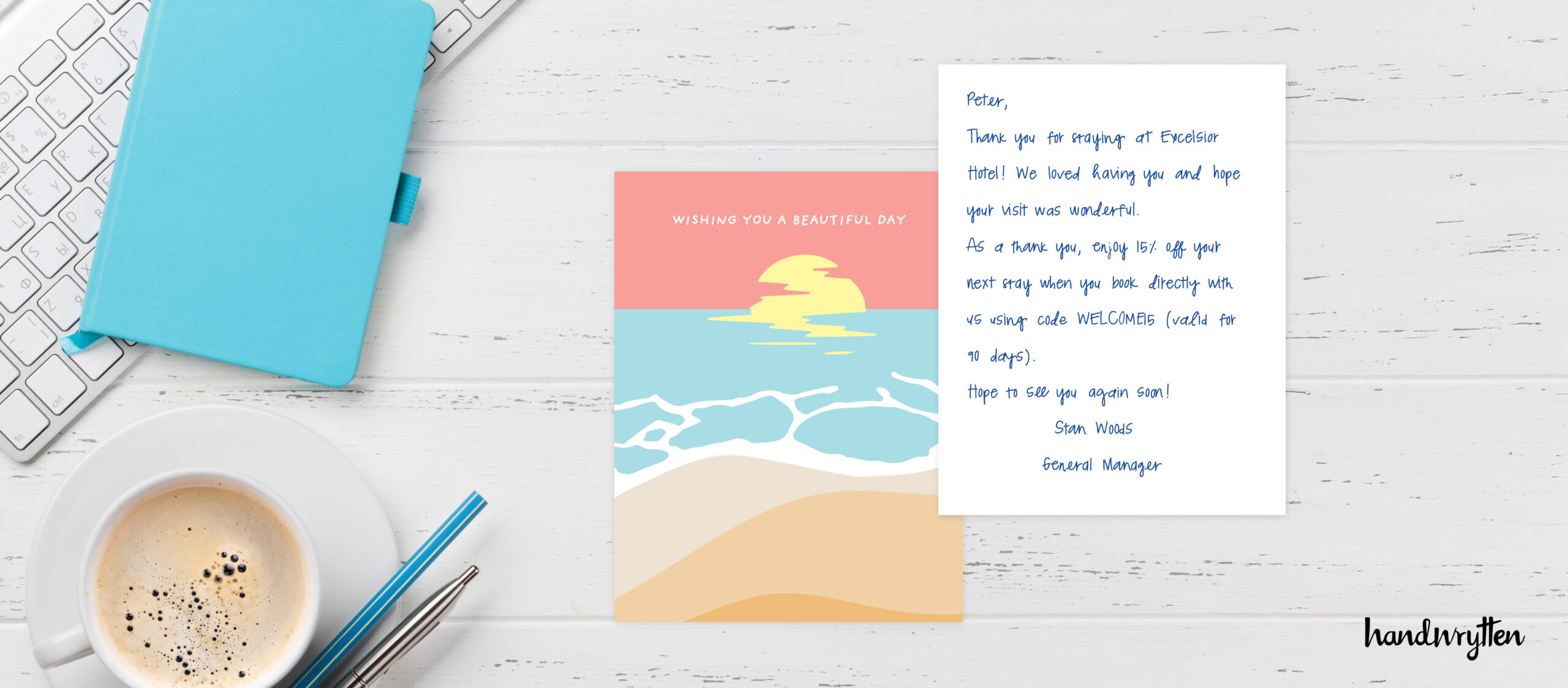 Example: After a guest’s stay, send a handwritten note with an exclusive offer for future bookings.
