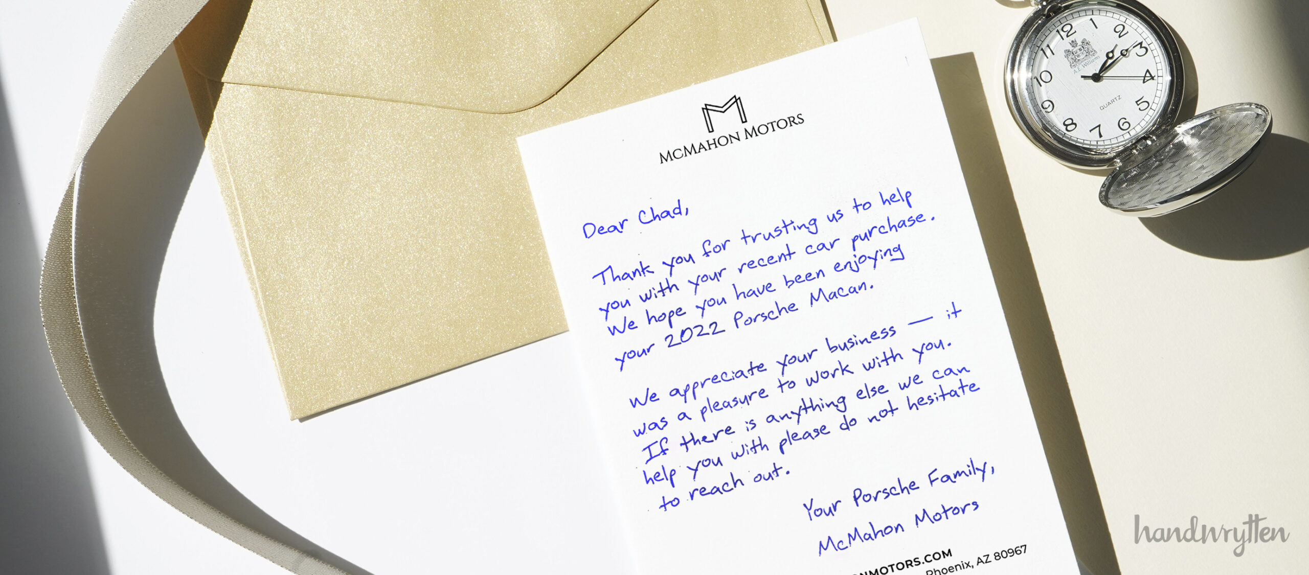 Check out our handwritten notes for automotive dealers if you are interested in automatically sending handwritten cards to your customers.