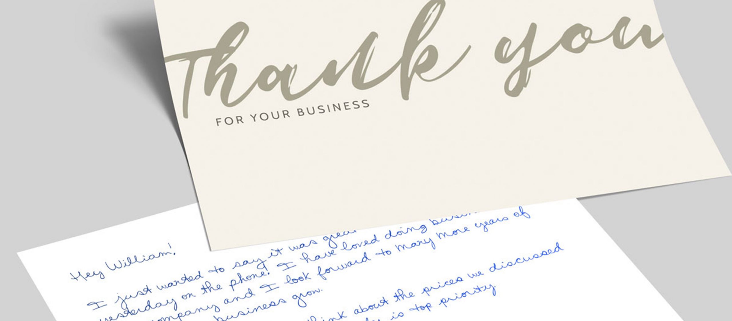 Hopefully, we’ve shown you the amazing benefits of composing a sincere letter of thanks to friends, customers, and anyone else who matters to you. What’s more, it doesn’t take nearly as much effort or pose as much risk as you might think, so don’t let those thoughts hold you back. If you’d like to expand the reach of your letters and deliver authentic, handwritten thank-you notes to a larger group of people than you can write on your own, check out the Handwrytten service.